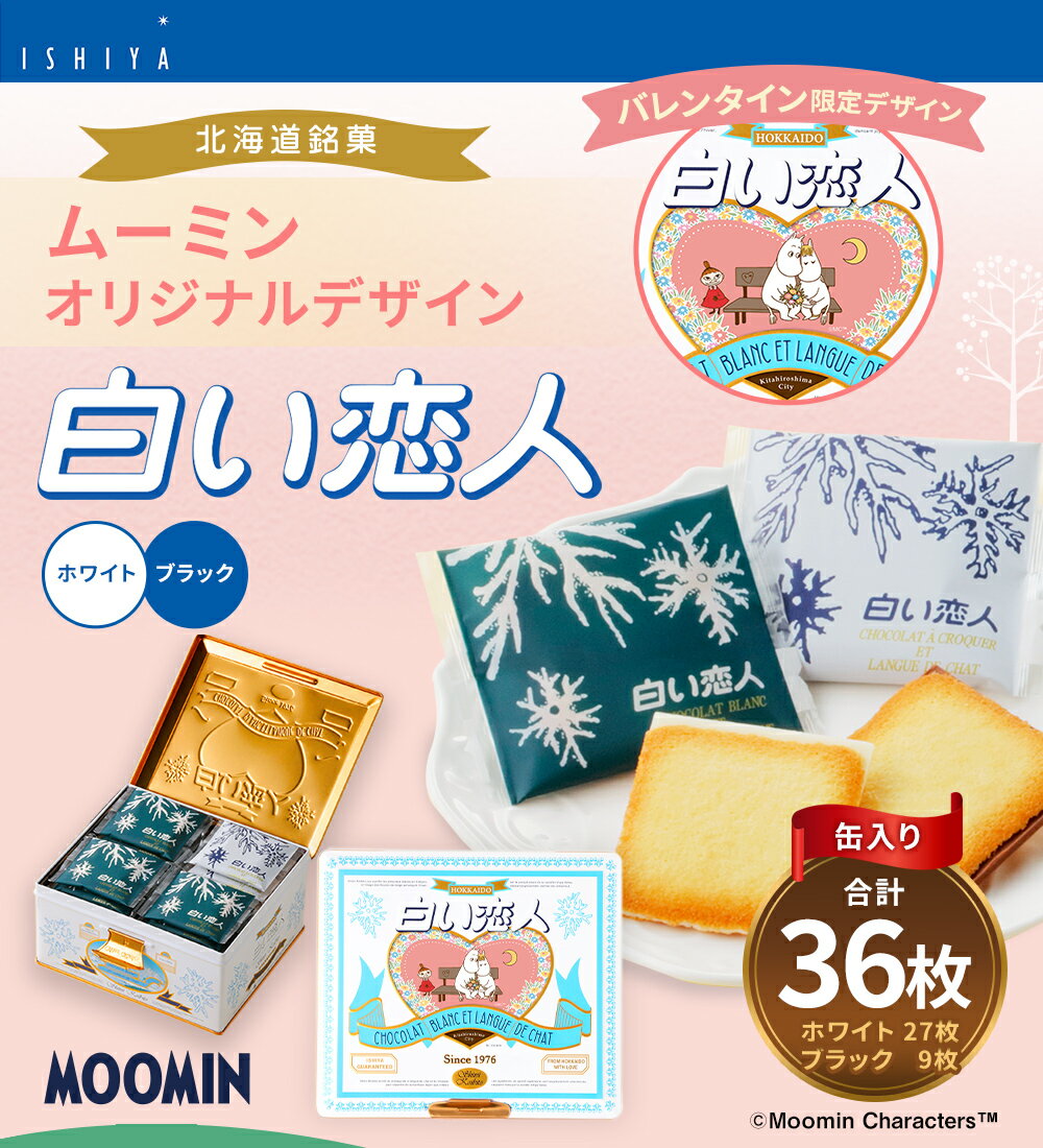 - 【ふるさと納税】ムーミン オリジナルデザイン 白い恋人36枚缶 バレンタイン限定デザイン(ホワイト:27枚、ブラック:9枚) 白い恋人 お菓子 おかし 洋菓子 スイーツ おやつ バレンタイン チョコレート 北海道 北広島市加工 送料無料 【2026年1月下旬~2月上旬頃にお届け】