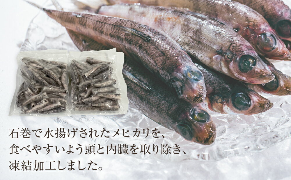- 【ふるさと納税】石巻市産メヒカリ1kg ( 500g × 2袋 ) 目光 めひかり 冷凍 頭 内臓取り済 揚げ物 唐揚げ アヒージョ 国産 メヒカリドレス おつまみ 肴 あて ビールに合う クラフトビールにも合う 簡単 時短調理 下処理済 魚 海鮮 魚介 宮城 石巻 宮城県 石巻市 14日以内