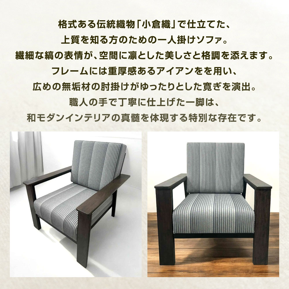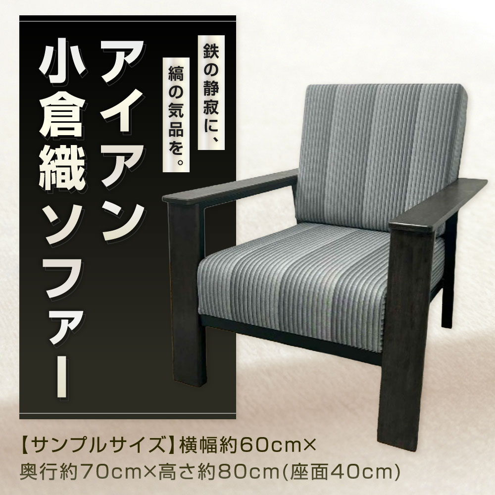 【ふるさと納税】アイアン 小倉織ソファー 横幅約60cm 奥行約70cm 高さ約80cm(座面40cm) 鉄 小倉織 伝統織物 縦縞 縞模様 和風 おしゃれ 伝統 無垢材 家具 一人掛け ソファー 椅子 チェア 肘掛け 背もたれ 和モダン インテリア 福岡県北九州市