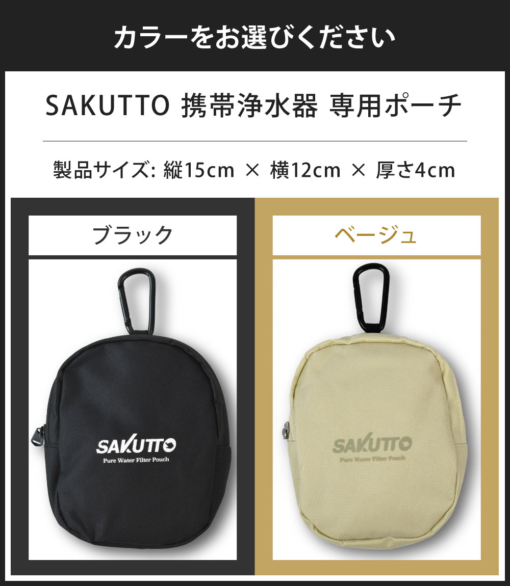 【ふるさと納税】SAKUTTO 携帯浄水器 専用ポーチ 選べるカラー ブラック / ベージュアウトドア ポーチ 登山 小物入れ 【日本正規品】 黒 茶色 ポーチ 軽量 耐久性 キャンプ カジュアル 携帯 カラビナ 小物入れ ファッション おしゃれ 福岡県北九州市
