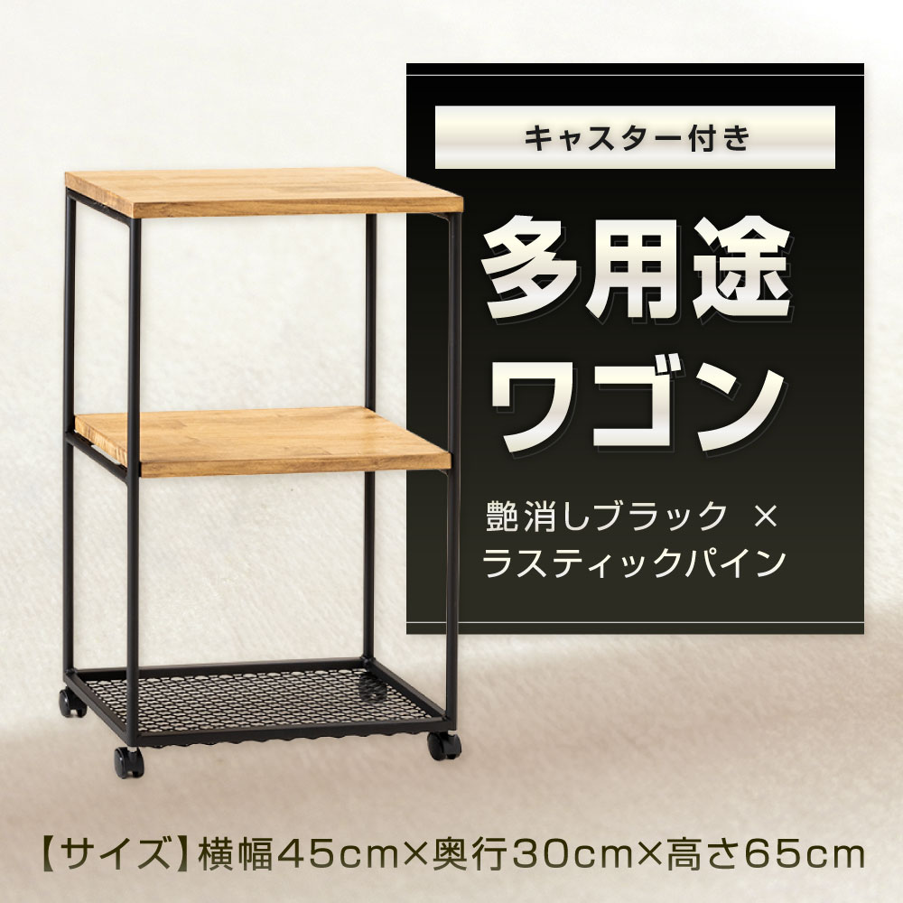 - 【ふるさと納税】キャスター付き 多用途ワゴン 艶消しブラック×ラスティックパイン 横幅45cm 奥行30cm 高さ65cm 鉄 アイアン ウッド 杉 集成材 ワゴン キッチンワゴン 収納 サイドワゴン グリーンラック 収納 キャスター おしゃれ インテリア 福岡県北九州市