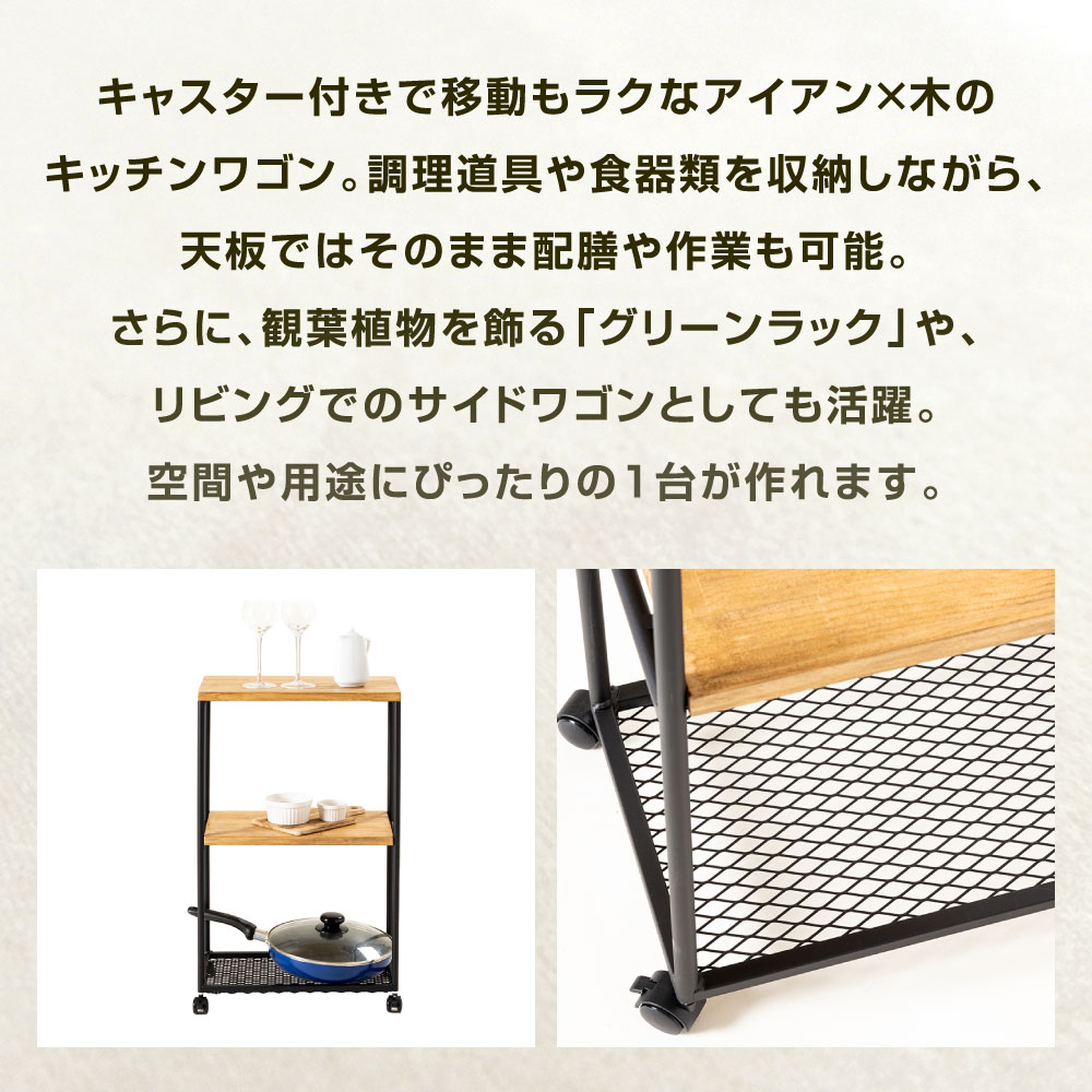 【ふるさと納税】キャスター付き 多用途ワゴン 艶消しブラック×ラスティックパイン 横幅45cm 奥行30cm 高さ65cm 鉄 アイアン ウッド 杉 集成材 ワゴン キッチンワゴン 収納 サイドワゴン グリーンラック 収納 キャスター おしゃれ インテリア 福岡県北九州市