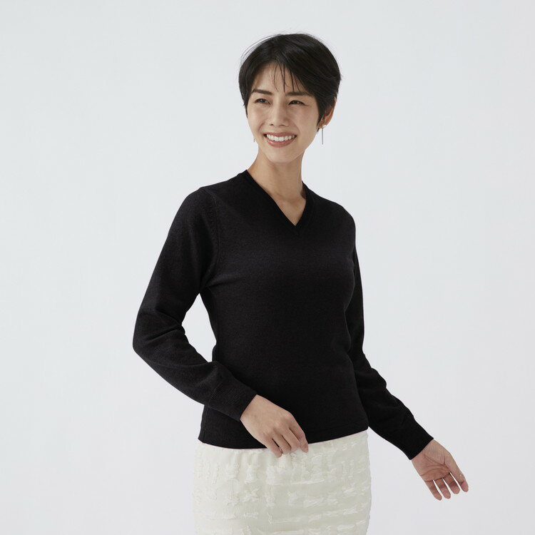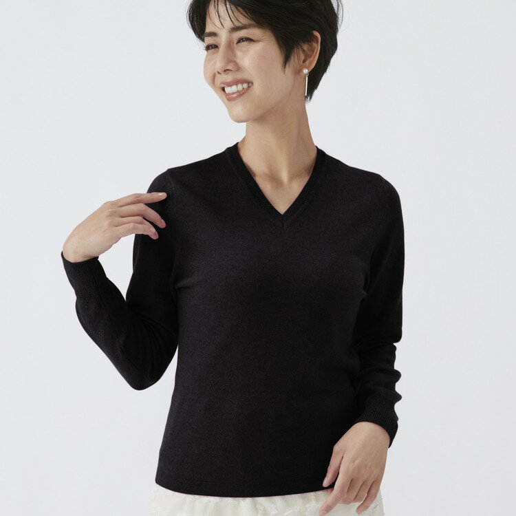 - 【ふるさと納税】【選べるサイズ】日本製 カシミヤ100% レディース Vネック ブラック