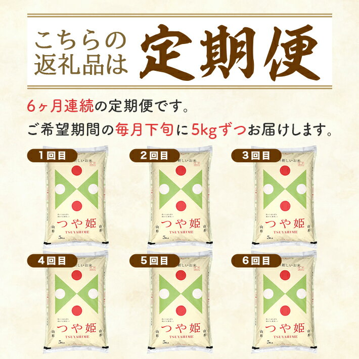 【ふるさと納税】≪6ヶ月定期便≫ 特別栽培米 つや姫 精米 5kg×6ヶ月連続 計30kg 山形県産 ご希望の毎月下旬頃お届け 東北 酒田市 お米 白米 ブランド米 ごはん 連続定期便 東北食糧 HACCP