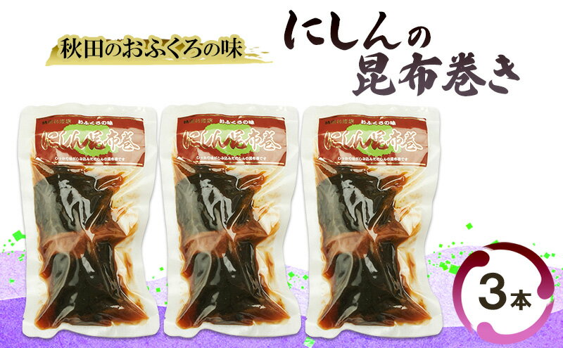 【ふるさと納税】秋田のおふくろの味 にしんの昆布巻き 3本 にしん 昆布 昆布巻き こんぶ オリジナル 調味液 甘辛味 保存料不使用 秋田 羽後