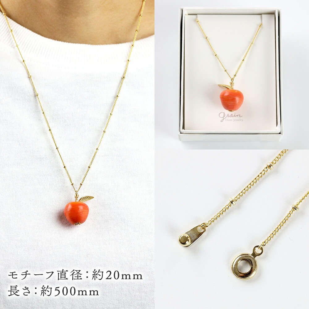 - 【ふるさと納税】林檎ネックレス 【コーラル】ガラスジュエリー Glass Jewelry grain アクセサリー 秋田