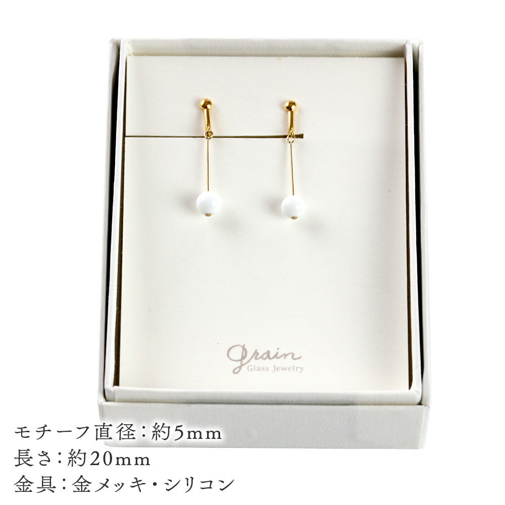 【ふるさと納税】一粒イヤリング 【白】ガラスジュエリー Glass Jewelry grain アクセサリー 秋田
