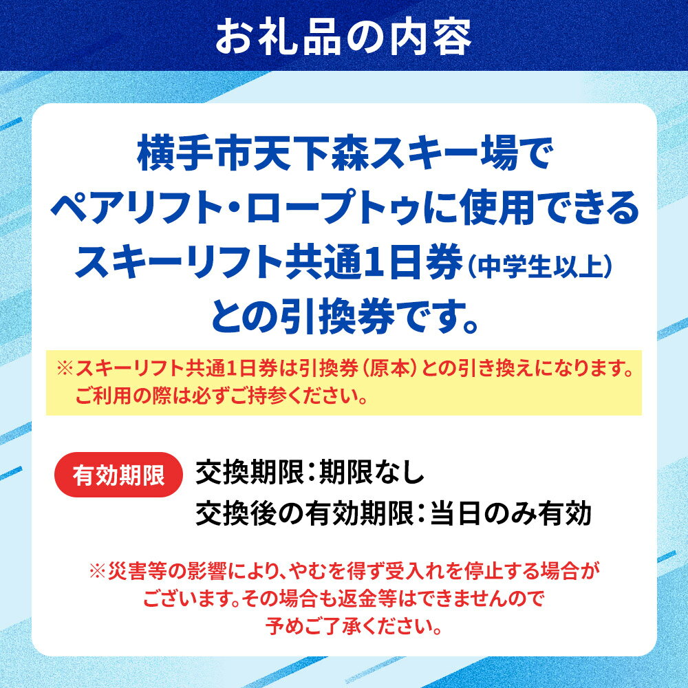 - 【ふるさと納税】横手市天下森スキー場 スキーリフト共通1日券(一般)引換券 ゆうパケット