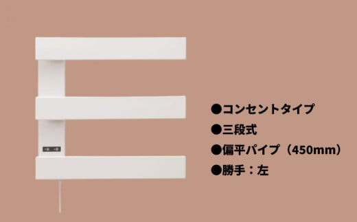 - 電気タオルウォーマー「ホットeラック」450mm偏平パイプ、3段式(勝手:左) T008
