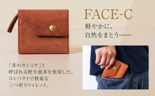 - FORESENT FACE-C ネイビー|革のカシミヤ 郡上市産 明宝鹿革 三つ折り財布/サイフ 軽量 ミニウォレット 鹿革 110000円 G0060c