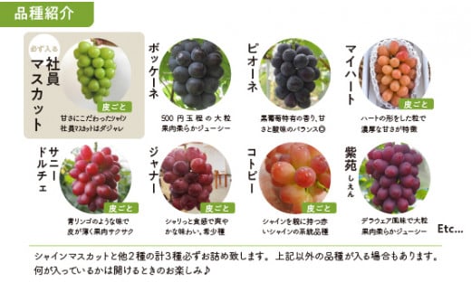 【2026年9月~発送】ぶどう シャインマスカット + おまかせ2種 約1.5kg(3?4房)山ノ内町産 ブドウ 葡萄 マスカット