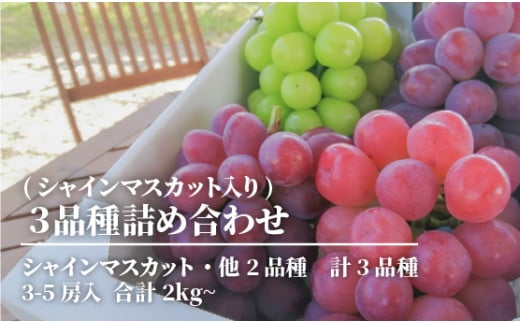 - 【2026年先行予約】旬のぶどう3品種詰め合わせ(シャインマスカット入り) 3~5房/計2.0kg~ (岡山県産) 【KF-B067-02】