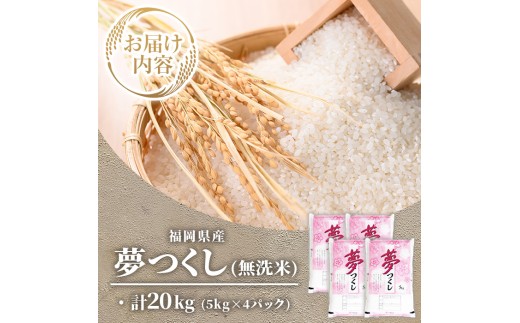 ≪令和7年産新米≫【無洗米】【食味鑑定士厳選】福岡県産 夢つくし(計20kg・5kg×4袋) 白米 無洗米 米 お米 おこめ ごはん ゆめつくし ご飯 常温 福岡県産 ブランド米 常温 常温保存 【ファインリョーコク】as34-009