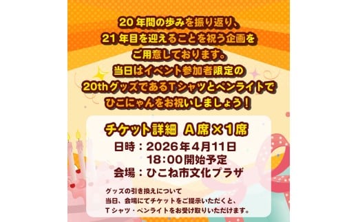 ひこにゃん 生誕20周年記念パーティー 【A席(TシャツサイズXL)】