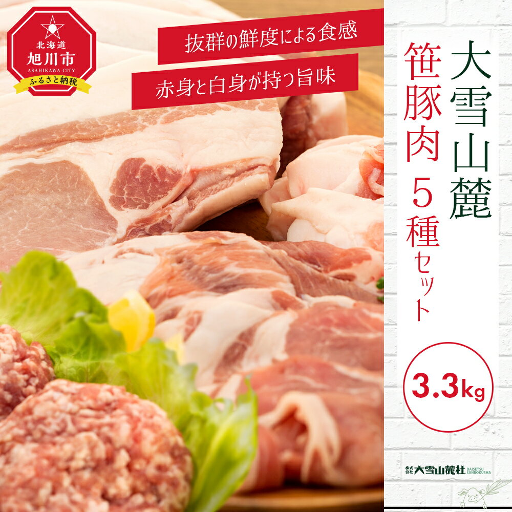 【ふるさと納税】3.3kg!大雪さんろく笹豚肉5種セット _00036 | 肉 セット 豚肉 笹豚 ロース 肩ロース しゃぶしゃぶ バラスライス ひき肉 挽肉 豚バラ お取り寄せ 冷凍 小分け 保存 旭川市 北海道ふるさと納税 北海道 送料無料