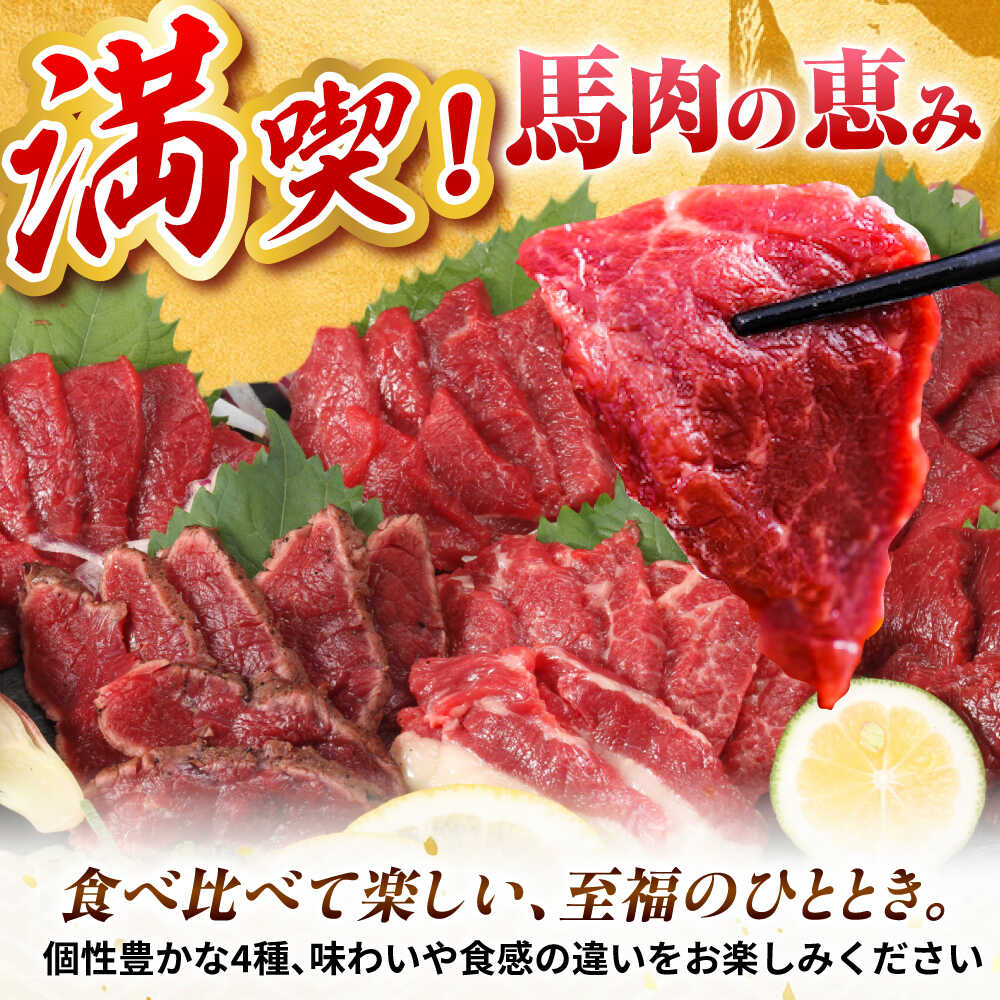 【ふるさと納税】【全12回定期便】『純国産』熊本の味 馬刺し 満喫 4種 セット 計約420g 赤身 上霜降り 桜 タタキ 食べ比べ 馬肉 熊本 ばさし 冷凍 詰め合わせ 合志 定期 定期便【有限会社 九州食肉産業】[AYCN033] 馬刺 霜降り 国産