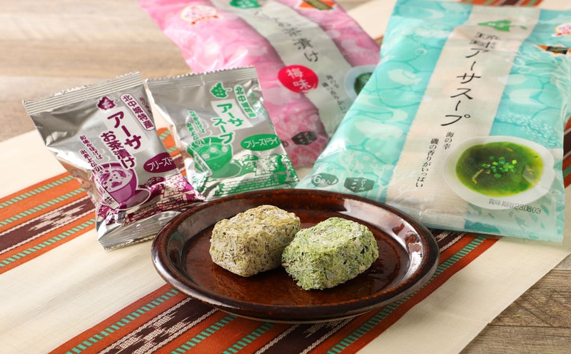 琉球アーサスープ お茶漬けセット 梅味 沖縄県 北中城村産 4g 6袋 4.5g 4袋 各2セット 計20食 あおさのり あーさ ひとえぐさ スープ 海藻 栄養 健康 ビタミン ミネラル 食物繊維 緑黄色野菜 お吸い物 沖縄そば 天ぷら だし巻き卵 長寿 抗酸化作用 佐敷中城漁業協同組合