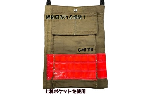 アップサイクル サコッシュ ワッペン『隊長』「廃棄予定の消防防火服が、世界にひとつだけのサコッシュに!」【 サコッシュ 茨城県 日立市 】