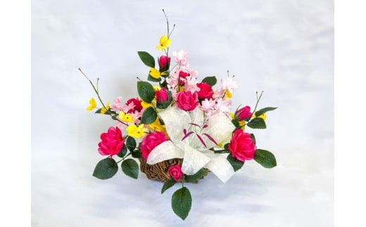 - 【まゆ玉から生まれる花 まゆ花(別名:シルクフラワー)】まゆ花ギフト かご花アレンジメント 1004003