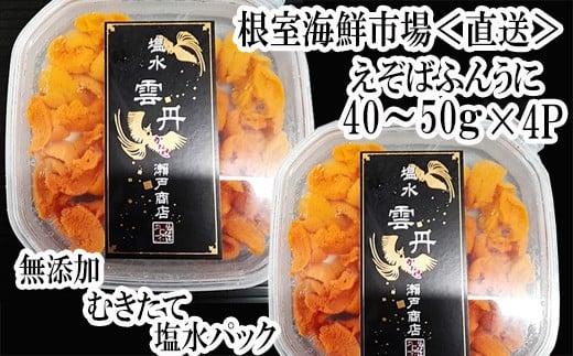 - B-28094 根室海鮮市場<直送>無添加むきたてエゾバフンウニ(赤系)塩水パック40~50g×4P[2026年1月中旬以降発送]