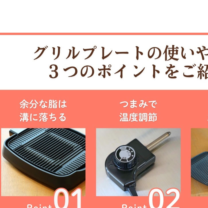 - グリルプレート キッチン用品 調理家電 コンパクト 焼肉 肉 魚 野菜 温度調節 卓上