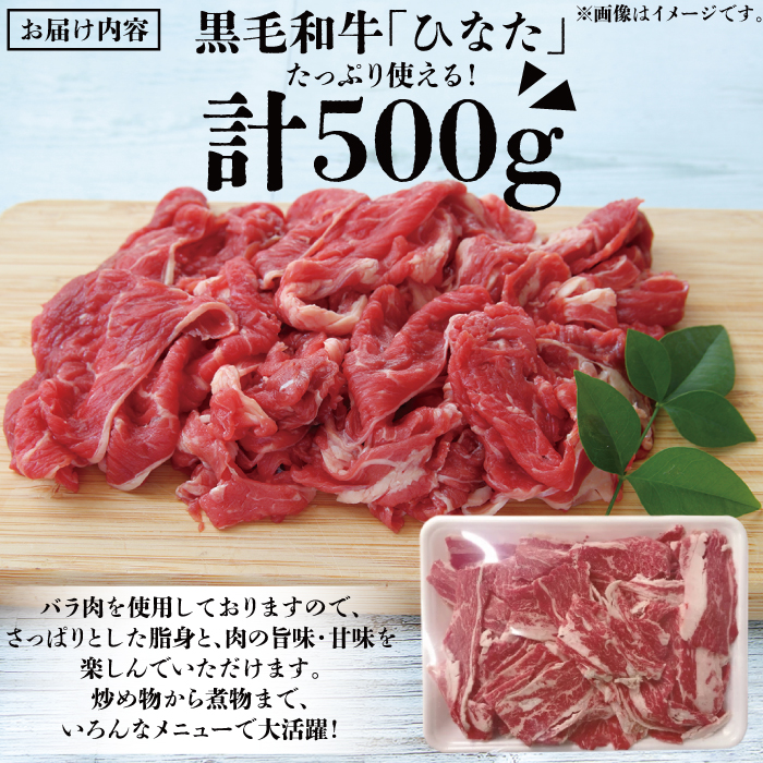 「黒毛和牛ひなた」バラ切り落とし肉 500g 宮崎県産和牛 オリジナルブランド牛【A289】