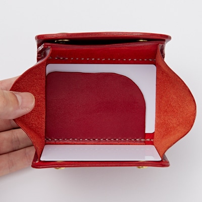 - 【ちっこくても使い易いミニ財布no.3】右利き用 かわいい赤革 多機能Boxタイプ 手縫い【1692337】