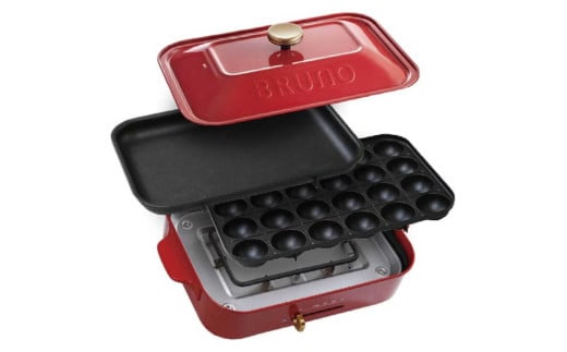 - BRUNO コンパクトホットプレート プレート2種(たこ焼き 平面) レッド ホットプレート ブルーノ たこ焼き 平面 鋳物ホーロー テーブルウエア 食卓 料理 2名 3名 おうちパーティー 温度調節 パーティー 子供 お友達 家族 プレゼント 贈り物 ギフト 東京 新宿 0152-001-S07-1
