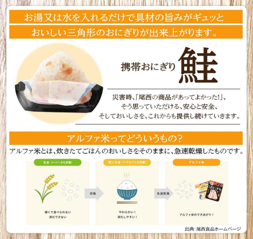 - 備えて安心、食べて満足|尾西の携帯おにぎり 鮭【50個入り】(非常食・保存食・キャンプにも) 非常食 保存食 防災グッズ 防災 アルファ米 長期保存 おにぎり 尾西食品 キャンプ アウトドア 登山 ふるさと納税 非常食 送料無料
