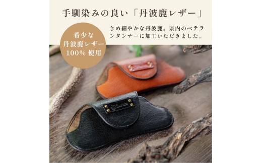 〈本革〉希少丹波鹿 メガネケース ブラック(無料名入れ 刻印) レザー メガネ 眼鏡 鍵 丹波鹿 鹿革 ギフト 刻印無料 名入れ無料