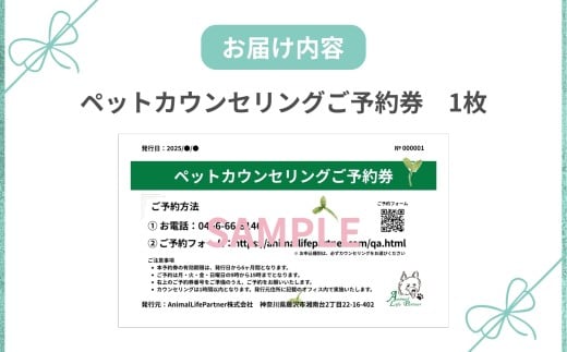- ペットカウンセリング 60分予約券 動物 ペット ぺっと 飼育 しつけ 獣医 カウンセリング かうんせりんぐ 悩み 相談 ケア オーダーメイド アドバイス 犬 いぬ 猫 ねこ ウサギ うさぎ ハムスター はむすたー アニマルライフパートナー株式会社 神奈川 湘南 藤沢