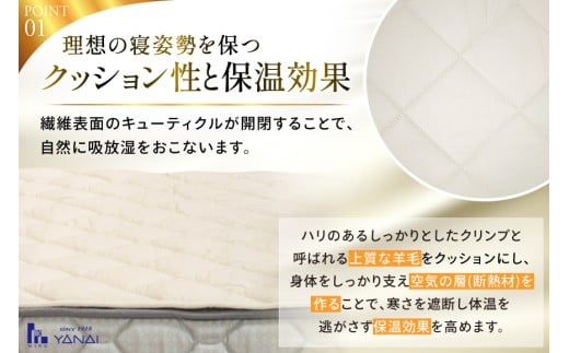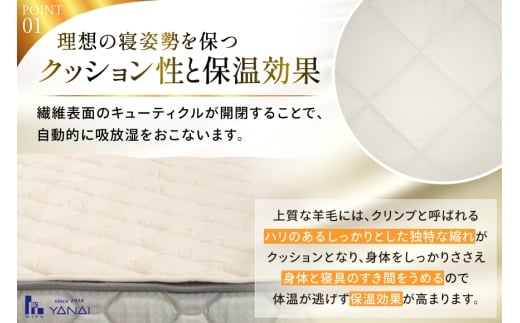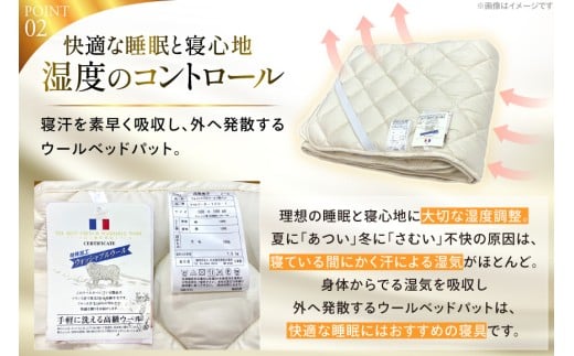 - プレミアム フランスウール ベットパッド 一層式 ワイドダブル (154×198cm) ウォッシャブル対応 [インテリアやない 福岡県 筑紫野市 21761343] ベッドパッド ウール 寝具