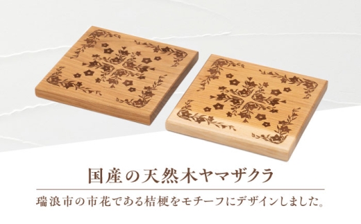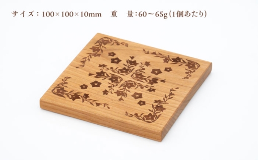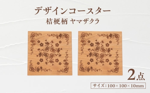 デザインコースター×2個 桔梗柄 ヤマザクラ 瑞浪市 / YADOSHIBI 木製 天然木 コースター おしゃれ [AZDI010]
