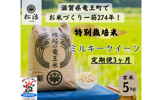 【 数量限定 】 定期便 ミルキークイーン 玄米 5kg × 3ヶ月 縁起の竜王米 ( 令和7年産 新米 玄米 5kg 3回 定期 お米 おこめ ごはん 米 特別栽培米 ブランド米 ライス こだわり米 ギフト 国産 縁起の竜王米 滋賀県竜王町 )