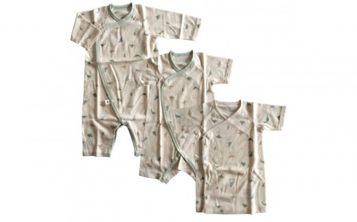 オーガニックコットンベビーウェア3点セット(恐竜プリント)
