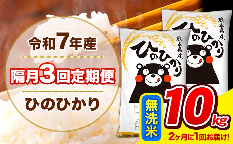 新米 令和7年産 ひのひかり 【隔月3回定期便】 【2ヶ月に1回届く】 無洗米 10kg (5kg×2袋) 計3回お届け 《お申込み翌月から出荷》 熊本県産 精米 ひの 米 こめ お米 熊本県 長洲町---hn7tei_73500_10kg_ev2mo3_ng_m---