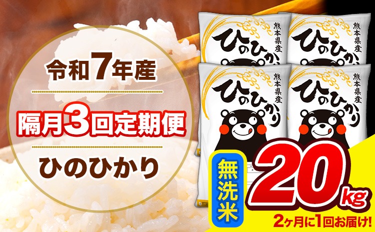 新米 令和7年産 ひのひかり 【隔月3回定期便】 【2ヶ月に1回届く】 無洗米 20kg (5kg×4袋) 計3回お届け 《お申込み翌月から出荷》 熊本県産 精米 ひの 米 こめ お米 熊本県 長洲町---hn7tei_145500_20kg_ev2mo3_ng_m---