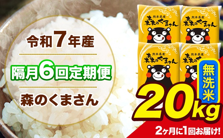 【隔月6回定期便】 【2ヶ月に1回届く】新米 令和7年産 森のくまさん 無洗米 20kg 5kg×4袋 計6回お届け 《お申込み翌月から出荷》 お米 こめ 熊本県産 ご飯 備蓄---mk7tei_291000_20kg_ev2mo6_ng_m---