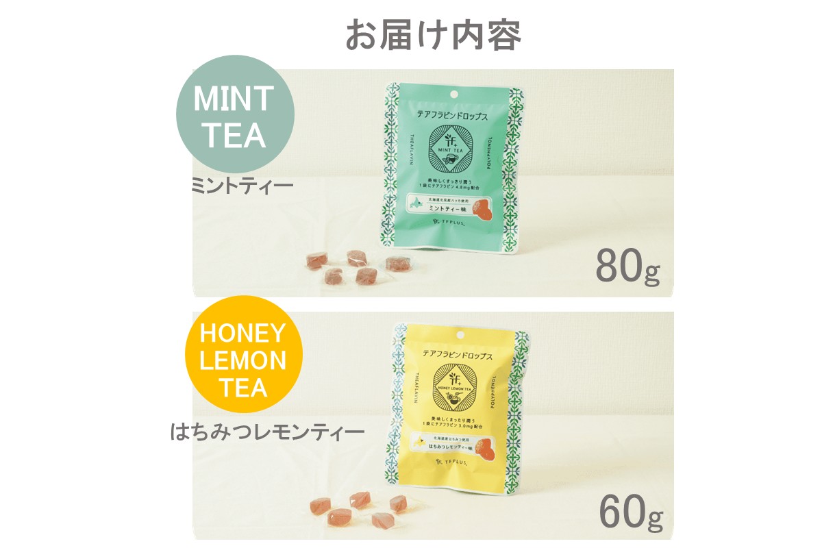 - 《7営業日以内に発送》テアフラビンドロップス 2種セット ( 飴 あめ アメ 菓子 はちみつ レモンティー ミントティー )【080-0083】