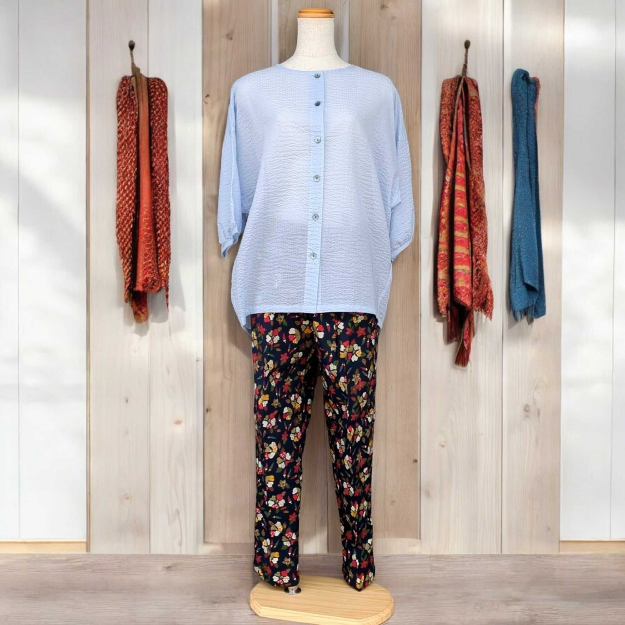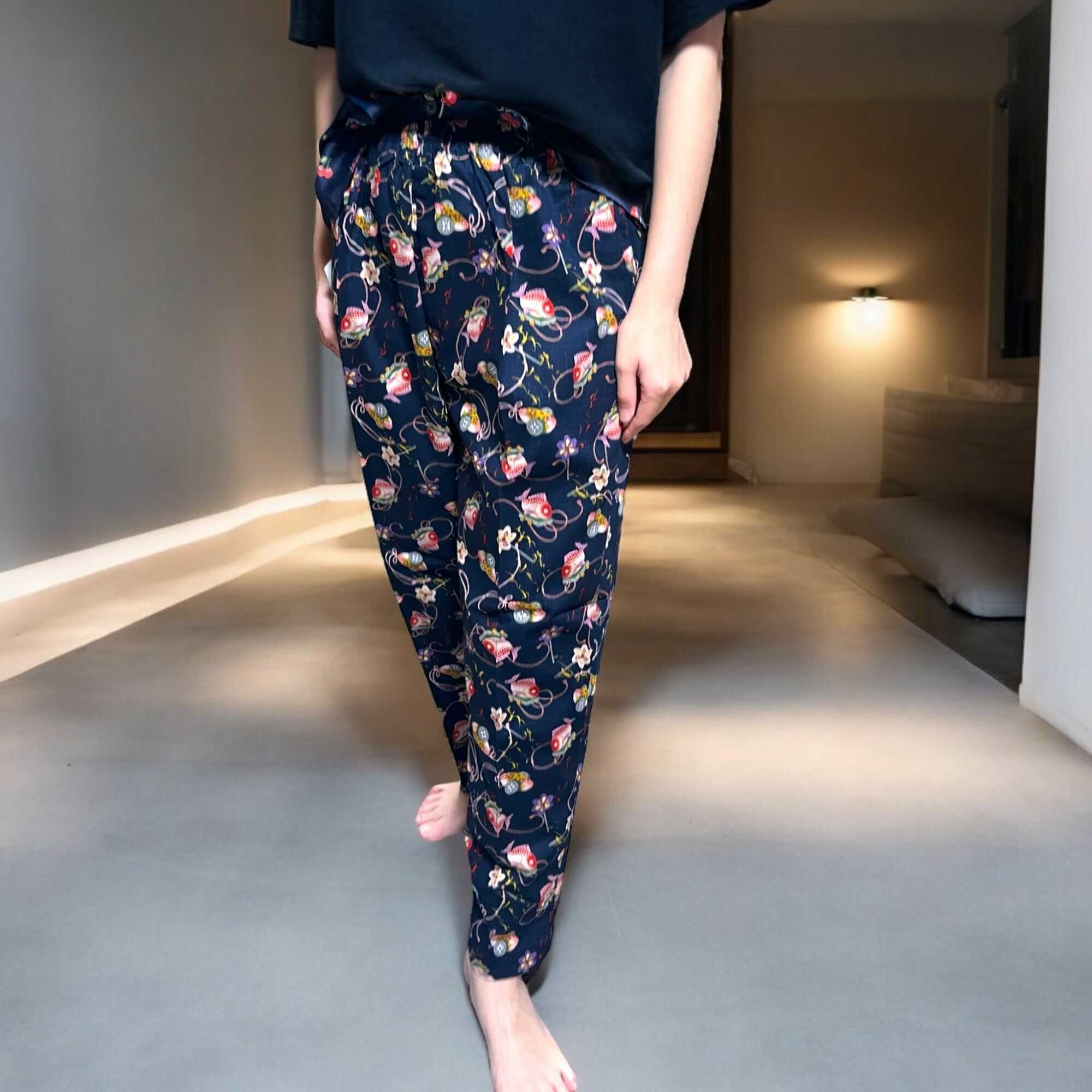 - 【ふるさと納税】日本製 綿100% 藍染調プリントパンツ・Cセット(Mサイズ2柄1組)【芸西織物株式会社】[ATGU007]