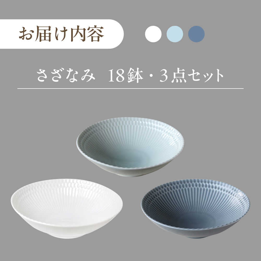 【ふるさと納税】【美濃焼】 さざなみ 19鉢 1450ml 3色セット 白 青白 ブルーグレー 瑞浪市 / JS企画 鉢 麺鉢 皿[AZAZ101]