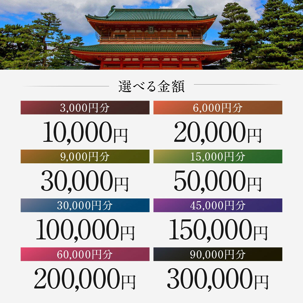 - 【ふるさと納税】【平安神宮会館】ギフト券<選べる金額>|京都 岡崎 名勝庭園 ギフト券 食事券[ 神苑 日本庭園 ランチ ディナー アフタヌーンティー ギフト券 食事券 3,000円~90,000円 人気 おすすめ 記念 お祝い 旅行 観光 食事 ふるさと納税 ]