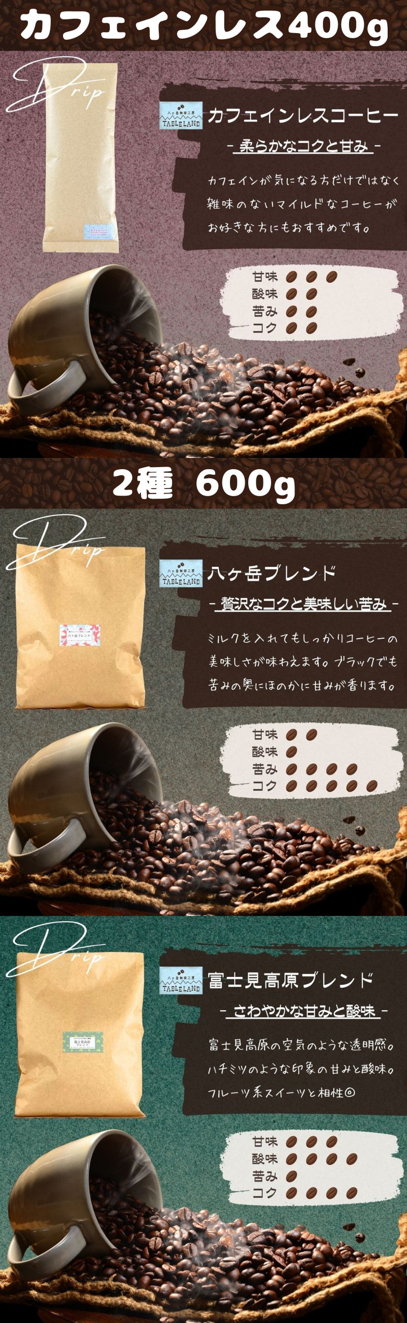 - 【ふるさと納税】八ヶ岳からお届け コーヒー 【 豆 or 粉 】 選べる数量 1種~6種 400g~1200g 飲み比べ ドリップコーヒー ドリップ カフェインレス 珈琲 ブレンド コーヒー 焙煎 セット 贈答 ギフト BOX 箱 八ヶ岳珈琲工房テーブルランド 信州 長野県 富士見町