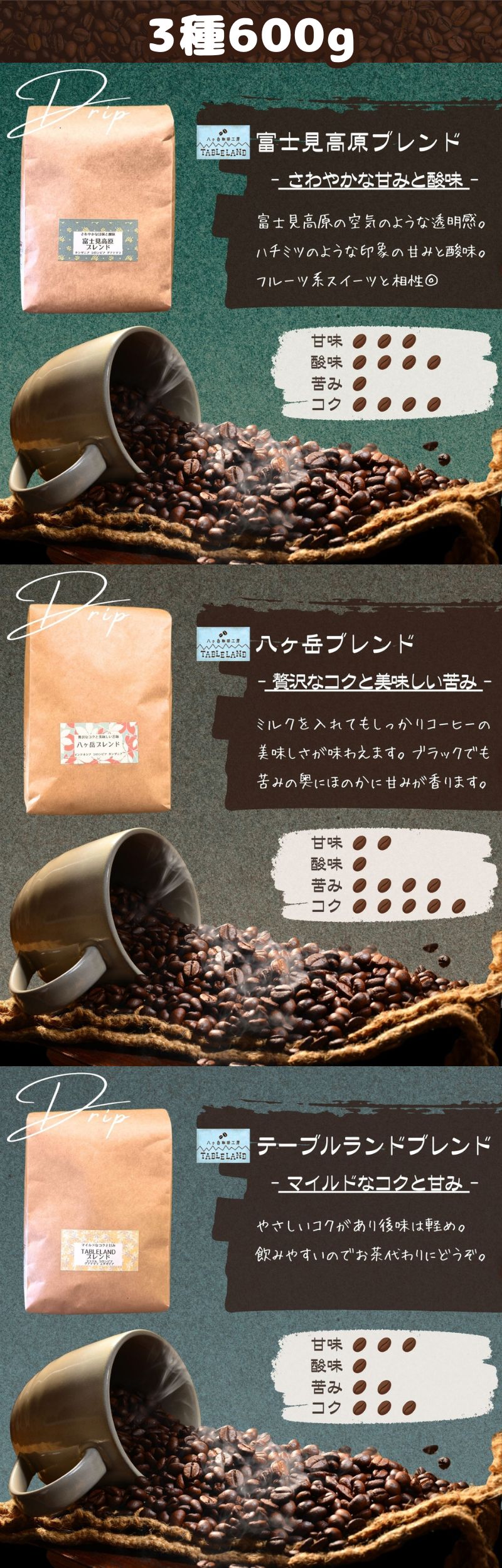 【ふるさと納税】八ヶ岳からお届け コーヒー 【 豆 or 粉 】 選べる数量 1種~6種 400g~1200g 飲み比べ ドリップコーヒー ドリップ カフェインレス 珈琲 ブレンド コーヒー 焙煎 セット 贈答 ギフト BOX 箱 八ヶ岳珈琲工房テーブルランド 信州 長野県 富士見町