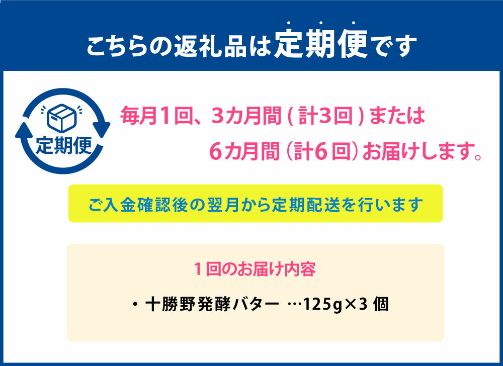 【ふるさと納税】《選べる回数》【3・6ヶ月定期便】十勝野発酵バター 125g 3個セット 3回 6回 バター 加塩 有塩 乳製品 発酵 北海道産生クリーム使用 道産 国産 冷蔵 北海道 中札内村 送料無料 [027-0152]