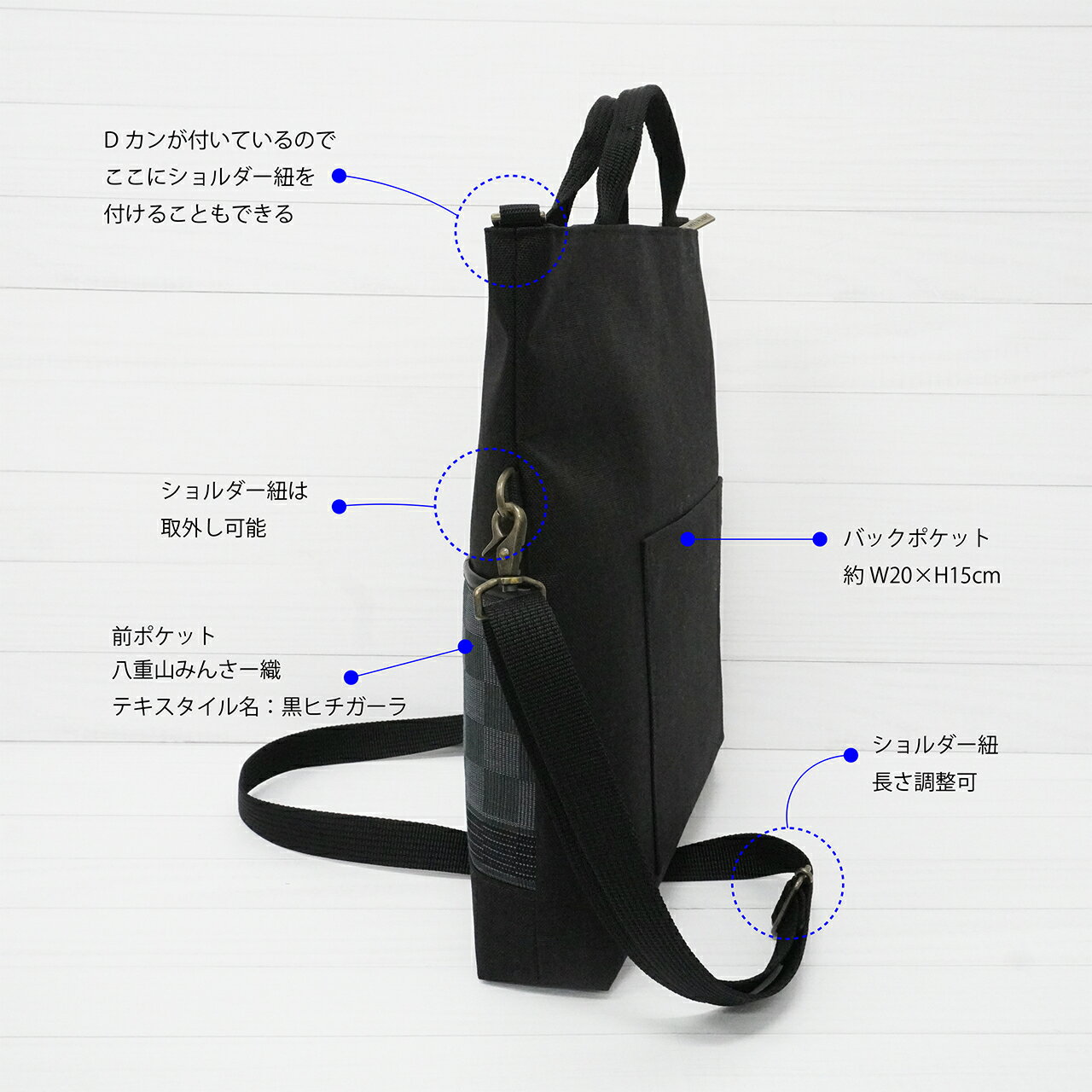 【ふるさと納税】八重山みんさー織 3wayバッグ 黒ヒチガーラ | 伝統工芸品 織物 みんさー 送料無料 沖縄県石垣市