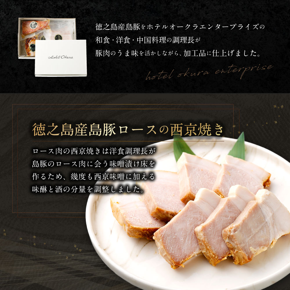 【ふるさと納税】ホテルオークラエンタープライズ監修 徳之島産 島豚 ギフト セット B 3種 各1パック 計約570g 島豚 ロースの西京焼き ( 200g ) 島豚の ロースハム と ベーコン の スライス ( 200g ) 島豚の チャーシュー ( 170g ) 鹿児島県 天城町 送料無料