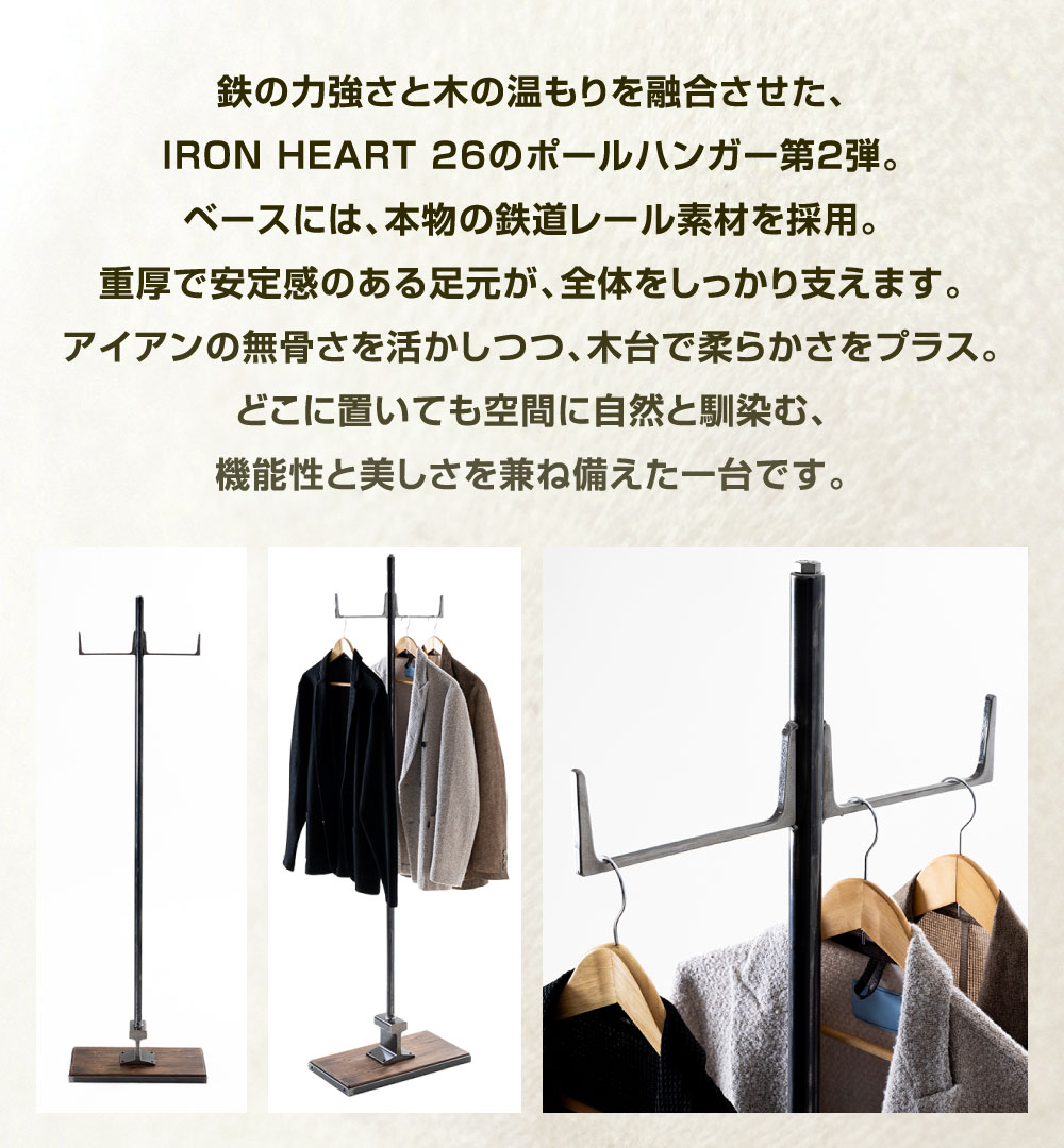 【ふるさと納税】レール使用 ポールハンガー 2 艶消しクリア(鉄の色)×ウォルナット 幅40cm 奥行25cm 高さ168cm 鉄 アイアン ウッド 杉 無垢材 レール ポール ハンガー スタンド 帽子 バッグ インテリア 家具 組立式 福岡県北九州市