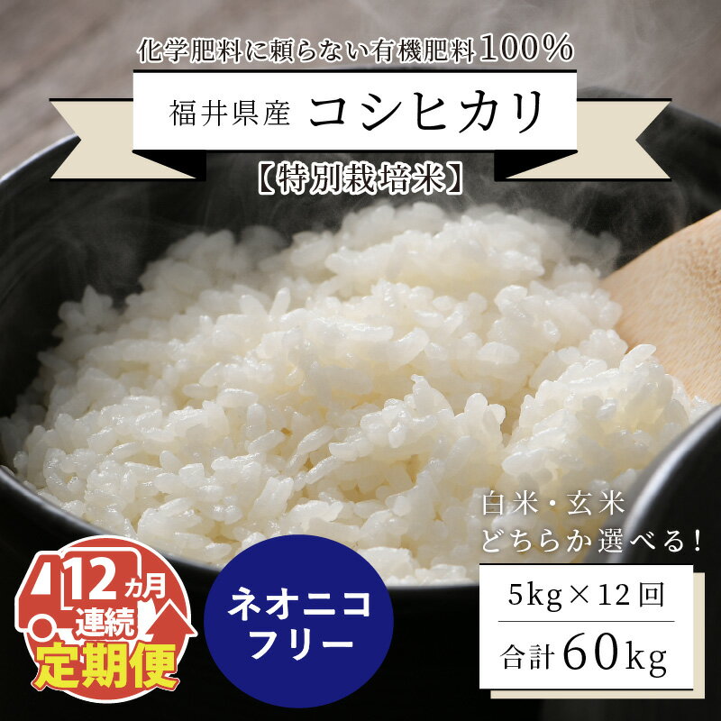 - 【ふるさと納税】【先行予約】【令和8年産・新米】【12ヶ月連続お届け】【特別栽培米】福井県産 コシヒカリ 5kg × 12回 計60kg ネオニコフリー 【2026年10月以降順次発送予定】【 白米 玄米 ごはん ブランド米 こしひかり 米 5キロ 産地直送 定期便 ふるさと納税米 】