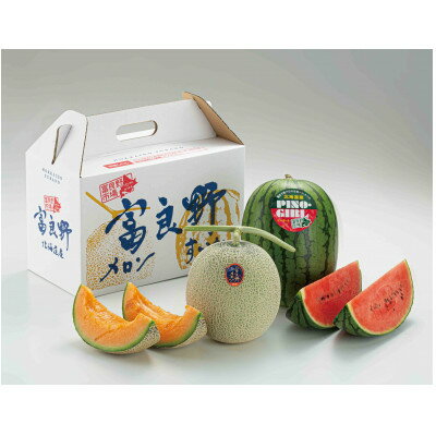 - 【ふるさと納税】ふらの赤肉メロン1.6kg×1玉 小玉スイカ×1玉【配送不可地域:離島】【1475450】